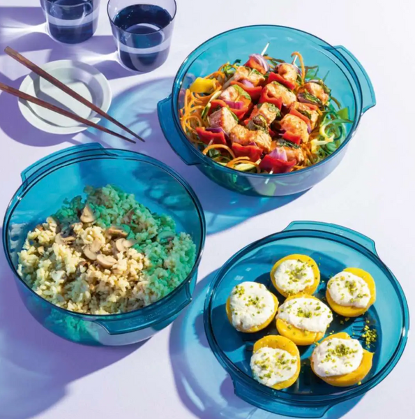 Met de Tupperware MicroPlus 3 magnetronschalen kook je eenvoudig een hele maaltijd in de magnetron.