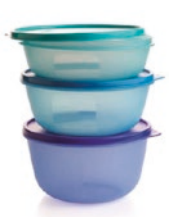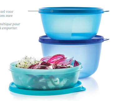 De kommen nemen slechts weinig plaats in beslag. Omdat ze allemaal dezelfde diameter hebben, stapel je ze in de koelkast gewoon op elkaar, en in de opbergkast nestelen ze in elkaar.